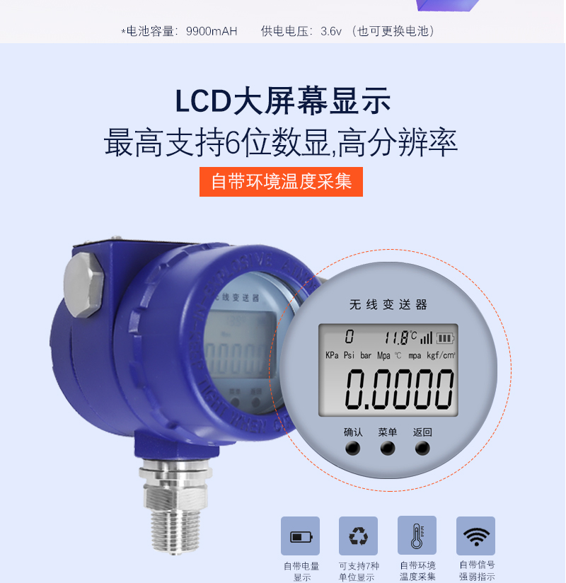 YD-221WA無線投入式液位變送器,量程范圍 0-5m/10m/20m…500m 內,可定制特殊量程范圍精度等級 0.5% 可定制 0.1%,0.25%高精度