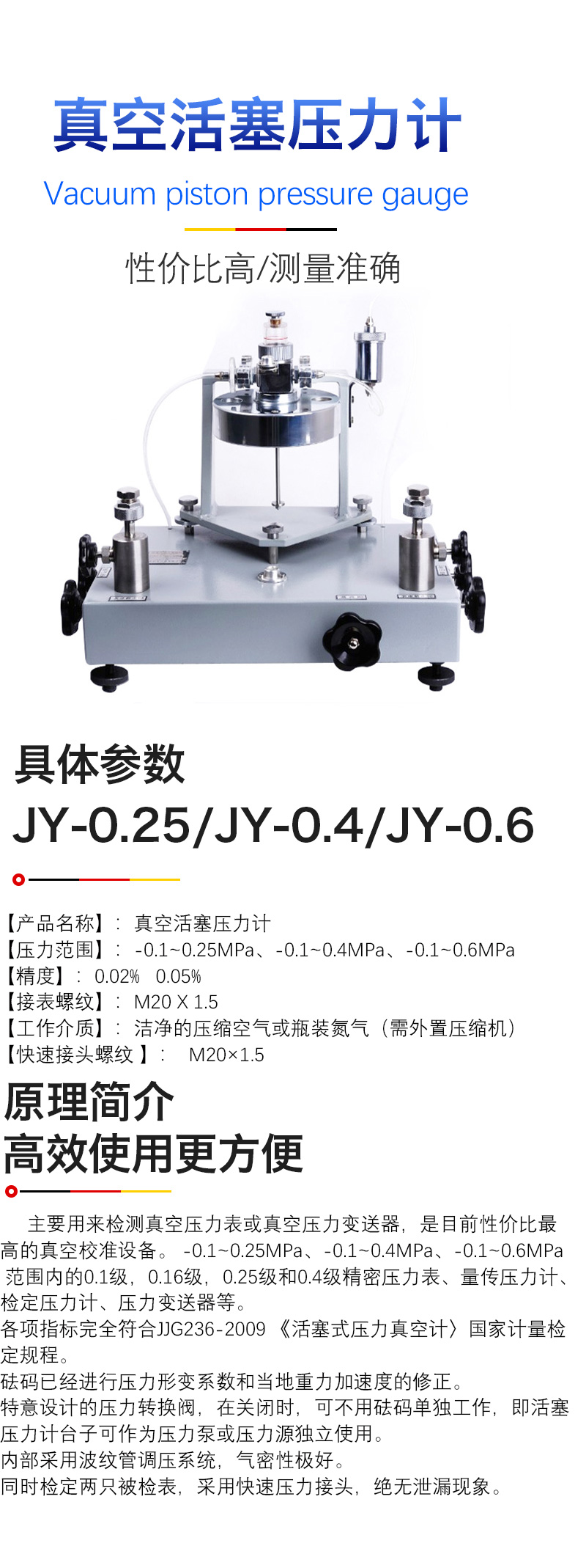 符合國家最新檢定規程JJG59-2022《液體活塞式壓力計檢定規程》